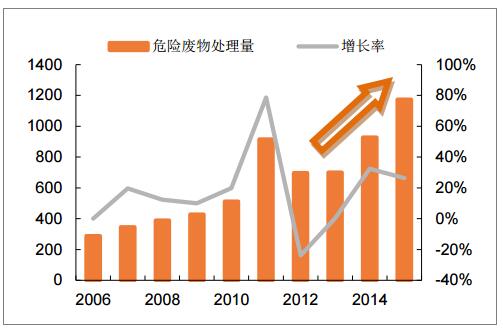危險廢物處理(lǐ)量呈快(kuài)速增長趨勢