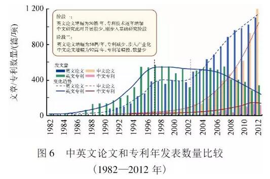 階段一,國(guó)際研究爲滞漲期,相(xiàng)關論文從(cóng)1989年(nián)的1篇增長到1997年(nián)的398篇,年(nián)均增長約爲58篇/年(nián),國(guó)内研究此時開展很少;階段二,從(cóng)1997—2002年(nián),國(guó)際研究進入成熟期,期間論文的發表量相(xiàng)對穩定;階段三,從(cóng)2002—2012年(nián),國(guó)際研究又進入一個快(kuài)速增長期,增幅爲58篇/年(nián),該階段,中文研究也進入了一個快(kuài)速發展期,論文增幅爲92篇/年(nián),并在2012年(nián)發表總量與國(guó)際研究論文數量持平。這與該時期我國(guó)科(kē)研投入力度加大(dà)有關,且受到科(kē)研考評機(jī)制等因素的影(yǐng)響。可(kě)以看(kàn)出,我國(guó)已跨越第一階段,直接進入快(kuài)速成長期。