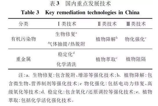 根據上述國(guó)際技術(shù)的研究現狀、技術(shù)發展的階段性,以及技術(shù)的起始時間、發展曆程、産業化程度和應用推廣範圍的分(fēn)析,可(kě)以将主要的污染土(tǔ)壤修複技術(shù)分(fēn)爲三大(dà)類(表2):I類技術(shù)相(xiàng)對成熟,已經實現産業化,該類技術(shù)包括有機(jī)污染物治理(lǐ)的氣體(tǐ)抽提、熱(rè)脫附和生(shēng)物(通風(fēng))堆,以及重金屬治理(lǐ)的固化/穩定化和氧化/還(hái)原調控等技術(shù);II類技術(shù)正逐漸成熟,開始進入産業化階段,該類技術(shù)包括有機(jī)污染物治理(lǐ)的原位氧化和生(shēng)物修複,以及重金屬治理(lǐ)的化學清洗和植物萃取等技術(shù);III類技術(shù)目前已有研究基礎,但(dàn)仍處于探索階段,包括有機(jī)污染物的物化強化修複和化學淋洗技術(shù),以及重金屬植物阻隔和電動力學修複技術(shù)。